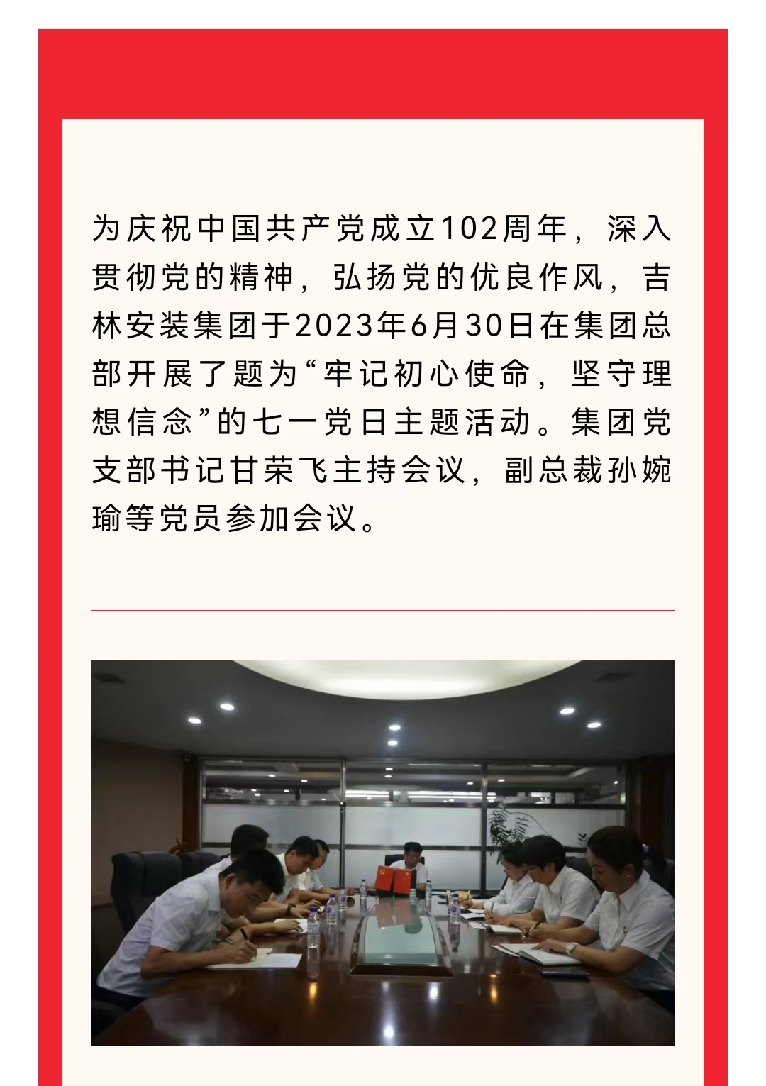 牢记初心使命,坚守理想信念——吉林安装集团开展七一党日主题活动