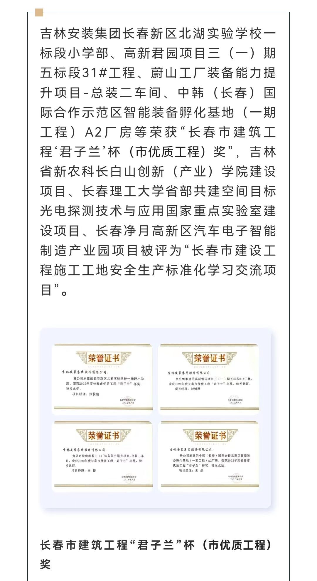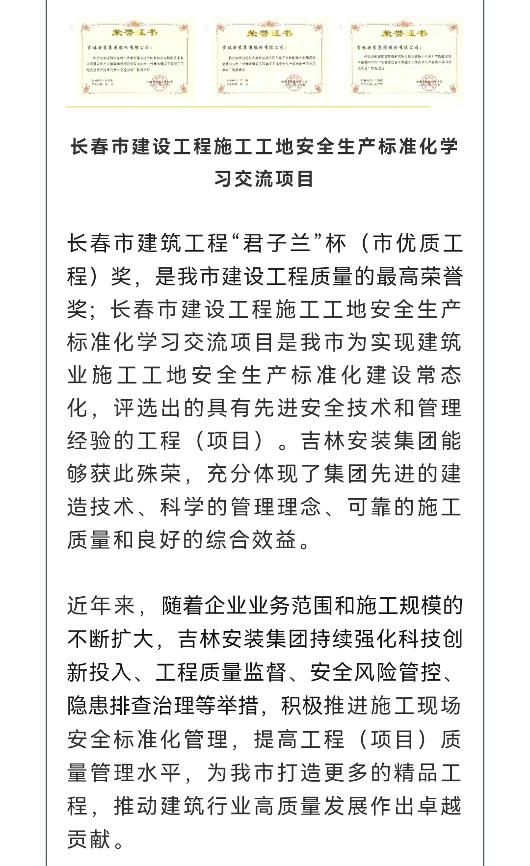 建精品 强安全 科技赋能筑匠心——吉林安装集团在2023年度评优创先颁奖大会喜获殊荣